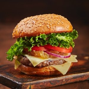 Double smashed beef patties with melted American cheese.